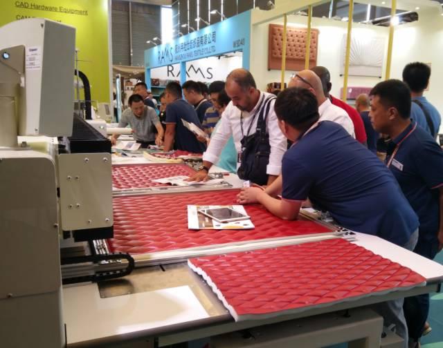 今天是家具展的第一天,富怡展位前十分熱鬧!富怡電腦繡花機(jī)、零等待縫紉機(jī)、三合一電腦裁床、立式噴墨切割機(jī)、繪圖儀等智能設(shè)備精彩亮相。